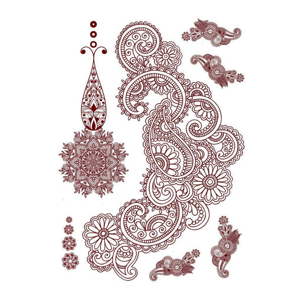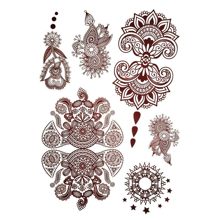 Amazon Com Hennatattoos Henna Temporary Tattoos Brown Waterproof Tattoo Stickers For Women Wedding Party Festivals Parties Decoration Suppliers 6sheets Beauty Personal Care